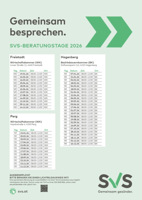 kostenlos unter Tel. 07266/20010-204 oder per Mail: Bildung@shvpe.at